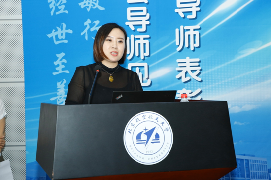 范英院长为获奖导师颁奖,并邀请和信电子商务有限公司CFO陈卫星作第三届社会导师代表发言。陈卫星先生希望同学们在学习、与人交流过程中,不仅需要务实,还要务虚,形成多元化学习和交流的模式,全面提升自己的专业水平和综合能力。