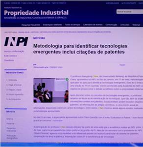 陈向东教授应邀访问巴西工业产权局(INPI),与工业产权局局长Pimentel教授会面,巴西工业产权局网站上刊登了有关讲座的报导。