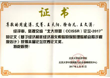 自2010年起,周建涛及研究生致力于研究车险人身伤害欺诈识别,3届已毕业研究生的论文均涉及车险人身伤害欺诈程度估计。自2006年以来,365英国官网周建涛与研究生合作,每年均向该论坛投稿,且每年入选会议论文,今年终于夺得论坛优秀征文奖。本次论坛能够获奖,也得益于美国两位合作老师艾菁、王天阳的大力支持。且本次参赛论文得到评审专家的一致好评。