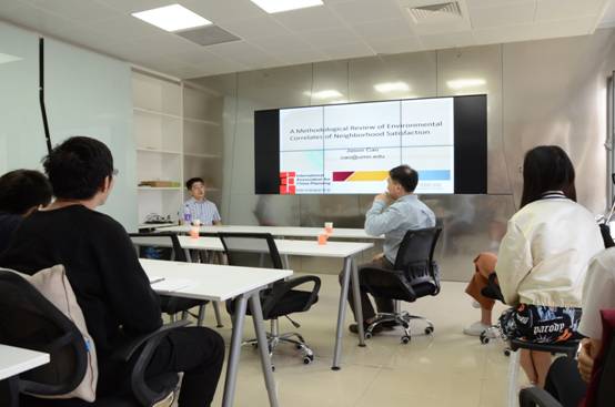 曹新宇教授从采用倾向得分匹配,统计控制,和结构方程模型探讨明州双子城轻轨对汽车拥有、汽车出行、公交出行的影响。他深入探讨了社区满意度准则的方法性研究,包括住房、公共物品与私人物品等在内的诸多因素,并对此进行了结构性分析。期间,曹教授热切地回答了在座师生感兴趣的问题,并就一些研究前沿的话题进行了深入交流与讨论。曹教授也介绍了美国明尼苏达大学公共事务学院相关情况,在学术深造与交流方面向大家提供了丰富的参考信息。报告会在热烈的气氛中圆满结束。