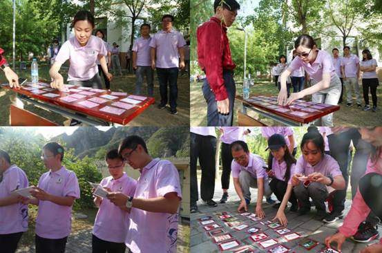在培训师的带领下,大家首先开始了破冰环节。全体参训人员被分为20个小组,每个小组配备了队旗,并选队长,想出队名、队歌。为了展现各自团队的激情、活力,团队成员个个绞尽脑汁、别出心裁,想出的队名五花八门,如“农药”、“勇闯天涯”、“无敌皮皮虾”、“王者荣耀”、“寻宝”、“阿玛塔”、“1617”等。别出心裁的队名以及幽默诙谐的团队口号,令现场同学捧腹大笑,并不时爆发出热烈的掌声。