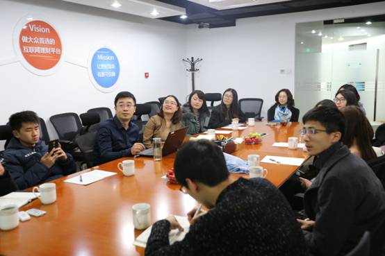 一路财富公司总经理、北航经管学院2002届校友吴雪秀女士热情接待了来访的师生一行。作为互联网金融新锐公司,一路财富致力于打造国内首家生活理财平台,为白领和中产家庭提供简单、有趣、可信赖的生活理财服务。参会学生对一路财富公司的先锋精神、年轻而活力的经营模式表示了极大的兴趣,就互联网金融的现状、公司的业务构架、未来理财市场的发展等问题,进行了深入的了解。双方还就公司的用户情况、宣传渠道、业务领域拓展等进行了热烈的探讨,并对公司如何提高客户粘性,加强客户信任,自媒体宣传等进行了交流,充分展现了北航金融专业学生的专业性和探索精神。