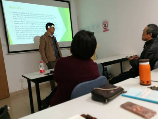 报告中,安教授从选题意义和动机、模型构建、实证分析等方面详细论述了“存在交易成本和模糊厌恶时资产组合的优化问题”。安教授使用鲁棒优化方法(robust optimization method)推导出最优的动态交易规则,并分析了其特性和独有的模糊厌恶对最优鲁棒策略的影响机制。安教授通过对不同的商品期货市场的数据进行实证分析,证实了考虑模糊厌恶的最优策略明显优于不考虑模糊厌恶的最优策略。最后,安教授与在座的师生们分享了自己在财经类国际期刊投稿和发表论文的体会和经验,并与在座的师生们进行了热烈的交流与讨论。此次报告会,使师生们受益匪浅。