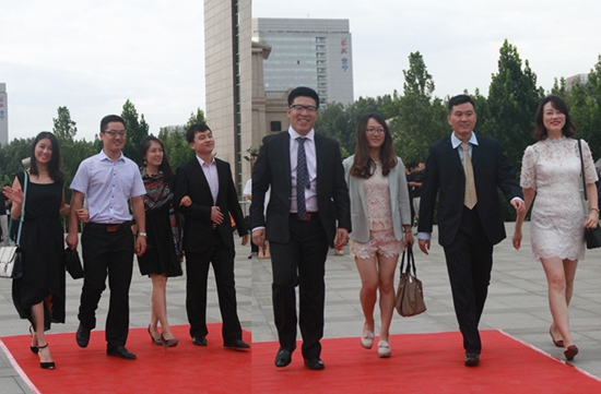 下午17点整,迎新盛典正式开始,每位MBA同学自由结伴踏上红毯,女士优雅多姿、男士英姿飒爽。每位同学在签到台前留下五彩手印、贴上活动名牌。刘志新书记与田东文主任作为压轴出场的红毯嘉宾,更是博得全场欢呼声。