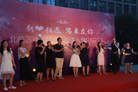 金风送爽,梦想起航, 365英国上市公司官网2016级MBA新生入学盛典——“新心相遇,缘来友你”,于9月2日下午在新主楼户外大平台成功举行。北航MBA教育中心希望通过自由开放、轻松惬意的活动形式,促进师生共欢聚、同学齐交流,表达对新同学加入北航MBA大家庭的欢迎之情!经管学院党委书记刘志新,副院长张人千、秦中峰、牟晖,研究生指导办公室主任单伟、研究生工作办公室衣萌,专业硕士教学中心任晖等老师,MBA中心主任田东文,副主任罗开平、魏亿钢,MBA校友会会长蒋占华,MBA中心办公室老师李慧、王兵、张丽媛、刘晓艳、肖红玮、王明媚,及2016级MBA全体新生共同出席迎新盛典。