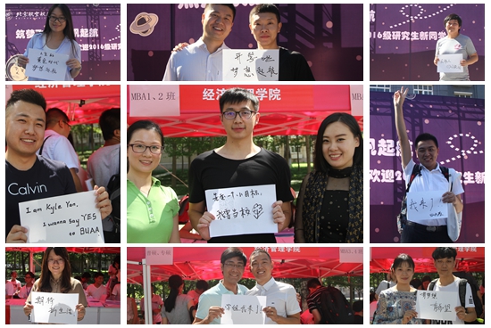 金风玉露,橙黄桔绿,2016年8月31日,北航365英国上市公司官网2016级MBA 新生报到工作在求是广场顺利开展。早上7:30,新一届MBA学生陆续来到经管学院新生报到处开始办理入学手续及领取资料,新生报到处人潮涌动,热闹非凡。