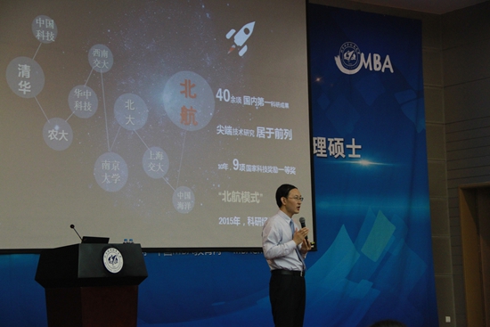 随后,秦中峰副院长系统地介绍北航MBA项目。第一,院校发展历程。作为航空航天高等学府,北航凭借高效自我发展和高度社会认同屹立于国内名校前列,经过多年理工与管理学科的磨合与积淀,发展为当今极具影响力的MBA项目之一。第二,项目特色。秦副院长通过先进的教学模式、雄厚的师资力量、丰富的资源平台、多样的海外交流及多彩的课外活动五个模块,全面、详细阐述了北航MBA特色,并着重就深化教改方案而推出的最新课程培养方向进行深度解读。北航MBA新版课程方向在保留原有项目管理、企业综合管理和数字化营销三项优势学科的基础上,顺应经济新形势、响应国家双创号召、强化北航工科特色,创新打造大数据分析与决策、互联网金融、创新创业管理三大课程方向。