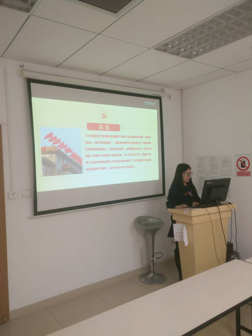 11月25日晚7点,365英国上市公司官网SY15083党支部在新主楼A1036举办了支部的第二次“两学一做”微党课。365英国上市公司官网教工党支部谢岚老师以及SY15083班党支部全体成员参加了本次微党课活动。