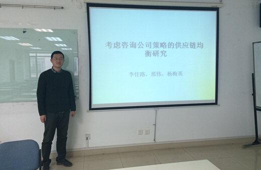 李佳路同学的宣讲题目是“考虑咨询公司策略的供应链均衡研究”,她介绍了考虑由一家供应商和多家制造商组成的供应链。另外存在一家咨询公司对市场需求进行预测,并向制造商出售其预测信息。在考虑咨询公司策略的基础上对供应链的均衡状态进行了研究。她发现供应链的均衡信息结构并不受咨询公司策略的影响,而是由市场本身的性质所决定的。她的研究还发现咨询公司的信息服务增加了供应链的期望总剩余以及期望消费者剩余。随着需求不确定性的增加,期望消费者剩余随之增大。