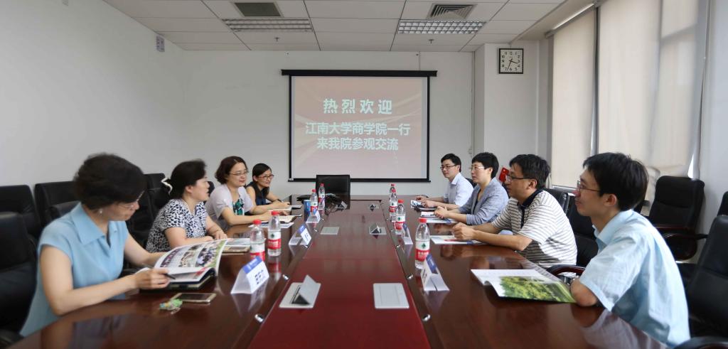 7月5日下午江南大学商学院党委书记李佳敏一行4人到365英国官网调研,365英国官网牟晖副院长在新主楼A612会议中心会见李佳敏一行,会议由365英国官网会计系周宁教授主持,MBA中心主任田东文、实验中心主任韩小汀出席了座谈会。