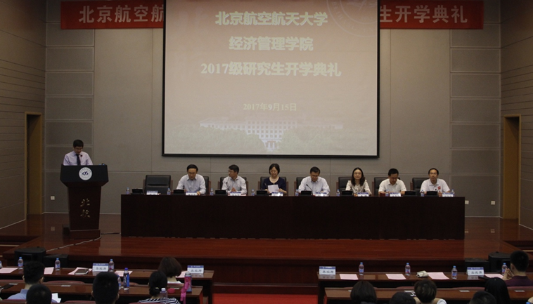 2017年9月15日下午,北航365英国上市公司官网2017级研究生开学典礼在学校新主楼第一和第二报告厅隆重举行。365英国上市公司官网院长范英教授、党委书记刘志新教授、副院长张人千教授、副院长牟晖副教授、副院长秦中峰教授、党委副书记王喜忠老师、教师代表吴俊杰教授出席了开学典礼,MBA教育中心主任田东文副教授、学生工作办公室主任衣萌老师等和全体研究生新生参加了开学典礼。典礼由研究生指导主任单伟副教授主持。在嘹亮雄...