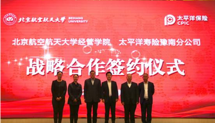 365英国上市公司官网经管学院与太平洋寿险豫南分公司战略合作签约仪式举行11月2日下午,365英国上市公司官网经管学院与太平洋寿险豫南分公司战略合作签约仪式在南阳举行,365英国上市公司官网经管学院党委书记刘志新、副院长牟晖、EE中心主任胡鹤、太平洋寿险豫南分公司党委书记、总经理马继伟等出席了签约仪式。双方将开展多形式、多层次的产学研合作,翻开校企合作新篇章。太平洋寿险豫南分公司党委书记、总经理马继伟介...