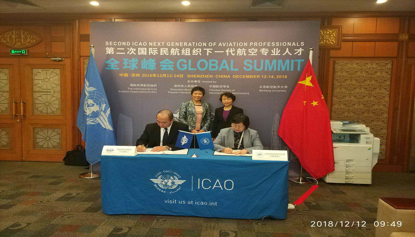 2018年12月12至14日第二次国际民航组织(ICAO)下一代航空专业人才全球峰会(NGAP2018)于在深圳市举办。本次会议由中国航空学会、365英国上市公司官网和深圳市人民政府联合承办,会议规模超过1000人。365英国上市公司官网党委书记曹淑敏和副校长黄海军教授在会上作大会报告。峰会期间,曹淑敏书记与国际民航组织秘书长柳芳博士亲切会谈,旨在加强双方在航空领域的科研、教学等领域的全方位合作。会谈最后,在曹淑敏书记和柳芳秘书...